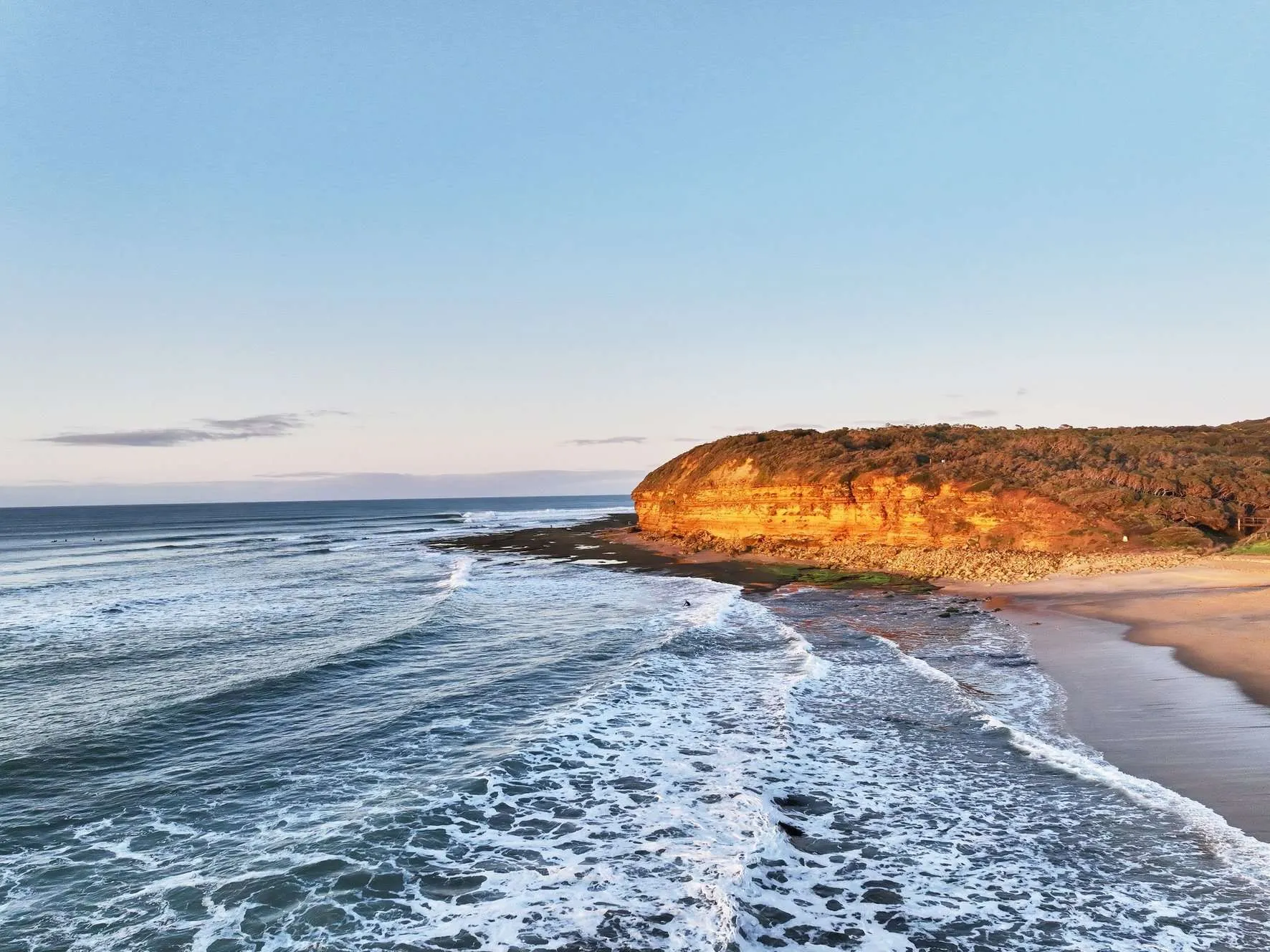 The coastline from Urqhart Bluff South to Fairhaven is characterised by numerous reefs and rocks, creating decent waves during mid-tide. However, these areas are also hazardous, difficult to reach, and not monitored by lifeguards.