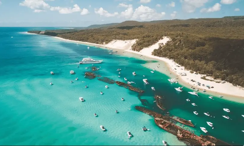 Renowned for its pristine sand dunes, Moreton Island ranks as one of Australia’s top camping spots. Rent a 4WD vehicle and traverse the sun-kissed sandy shores before establishing camp along the rugged seashore.